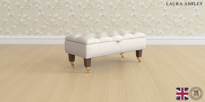 7.2.6 Buy Penarth by Laura Ashley Storage Footstool Anneliese Oyster Natural Straight Brass Castor - Chestnut from the Laura Ashley online shop Click here to use our website with more accessibility support, for example screen readers