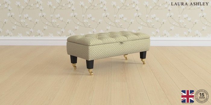 6.12.1 Buy Penarth by Laura Ashley Storage Footstool Chequers Hedgerow Green Straight Brass Castor - Black from the Laura Ashley online shop Click here to use our website with more accessibility support, for example screen readers