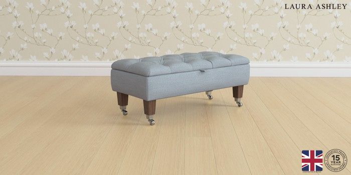 6.12.1 Buy Penarth by Laura Ashley Storage Footstool Kinsham Seaspray Blue Straight Chrome Castor - Chestnut from the Laura Ashley online shop Click here to use our website with more accessibility support, for example screen readers
