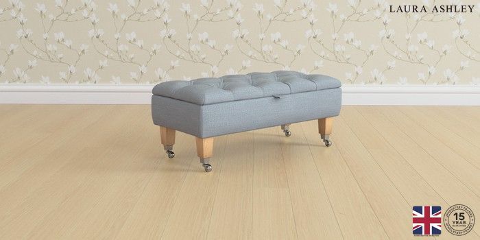 6.12.1 Buy Penarth by Laura Ashley Storage Footstool Kinsham Seaspray Blue Straight Chrome Castor - Light Oak from the Laura Ashley online shop Click here to use our website with more accessibility support, for example screen readers