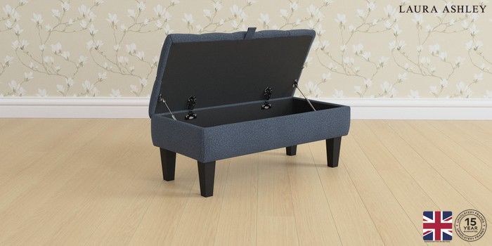 7.2.10 Buy Penarth by Laura Ashley Storage Footstool Lundar Chenille Navy Blue Straight Mid - Black from the Laura Ashley online shop Click here to use our website with more accessibility support, for example screen readers