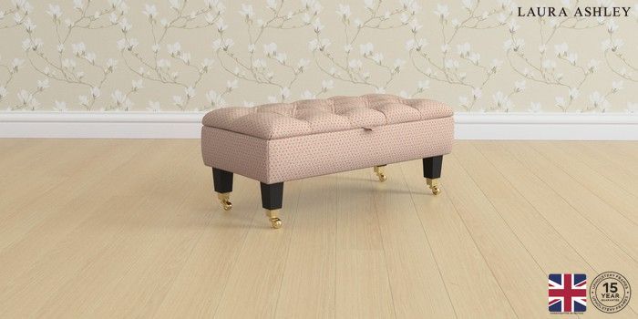 6.12.1 Buy Penarth by Laura Ashley Storage Footstool Melbreak Geo Chalk Pink Straight Brass Castor - Black from the Laura Ashley online shop Click here to use our website with more accessibility support, for example screen readers