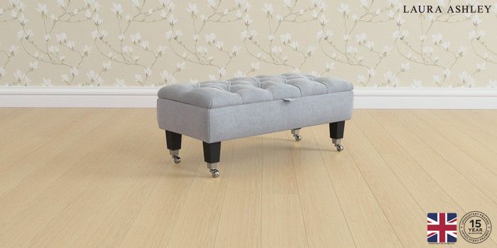 6.12.1 Buy Penarth by Laura Ashley Storage Footstool Peyton Powder Blue Straight Chrome Castor - Black from the Laura Ashley online shop Click here to use our website with more accessibility support, for example screen readers
