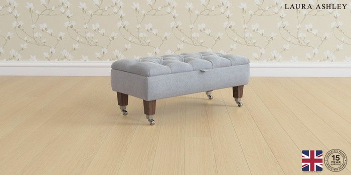 6.12.1 Buy Penarth by Laura Ashley Storage Footstool Peyton Powder Blue Straight Chrome Castor - Chestnut from the Laura Ashley online shop Click here to use our website with more accessibility support, for example screen readers