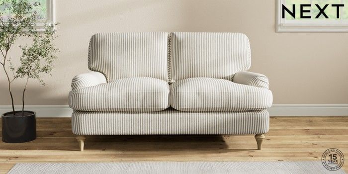 6.12.1 Buy Sadie Deep Relaxed Sit 2 Seater Small Sofa Chenille Stripe Moss Green High Slim Turned - Light from the Laura Ashley online shop Click here to use our website with more accessibility support, for example screen readers
