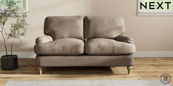 6.12.1 Buy Sadie Deep Relaxed Sit 2 Seater Small Sofa Chunky Weave Dark Natural High Slim Turned - Light from the Laura Ashley online shop Click here to use our website with more accessibility support, for example screen readers