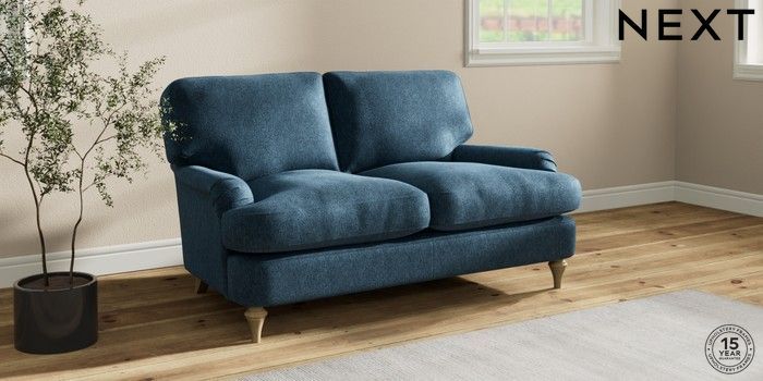 7.0.3 Buy Sadie Deep Relaxed Sit 2 Seater Small Sofa Cotswold Chenille Dark Blue High Slim Turned - Light from the Laura Ashley online shop Click here to use our website with more accessibility support, for example screen readers