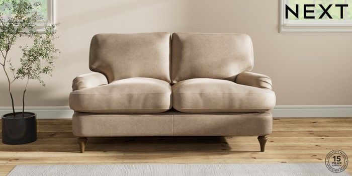 6.12.1 Buy Sadie Deep Relaxed Sit 2 Seater Small Sofa Luxe Chenille Mid Camel Beige High Slim Turned - Mid from the Laura Ashley online shop Click here to use our website with more accessibility support, for example screen readers