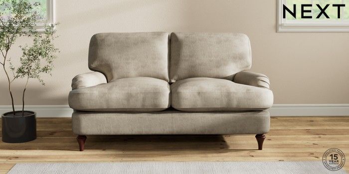 6.12.1 Buy Sadie Deep Relaxed Sit 2 Seater Small Sofa Monza Faux Leather Easy Clean Mink Brown High Slim Turned - Dark Brown from the Laura Ashley online shop Click here to use our website with more accessibility support, for example screen readers