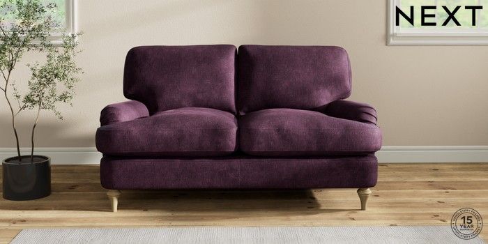 6.12.1 Buy Sadie Deep Relaxed Sit 2 Seater Small Sofa Plush Chenille Dark Plum Purple High Slim Turned - Light from the Laura Ashley online shop Click here to use our website with more accessibility support, for example screen readers