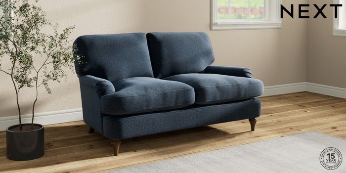 7.0.3 Buy Sadie Deep Relaxed Sit 2 Seater Small Sofa Ripple Chenille Dark Blue High Slim Turned - Mid from the Laura Ashley online shop Click here to use our website with more accessibility support, for example screen readers