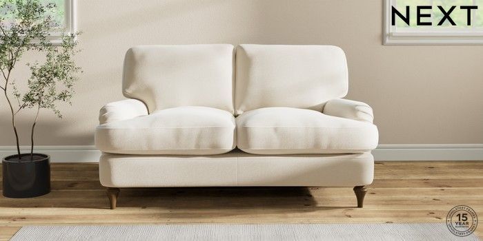 6.12.1 Buy Sadie Deep Relaxed Sit 2 Seater Small Sofa Ripple Chenille Oyster High Slim Turned - Mid from the Laura Ashley online shop Click here to use our website with more accessibility support, for example screen readers