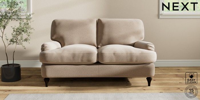6.12.1 Buy Sadie Deep Relaxed Sit 2 Seater Small Sofa Tweedy Blend Easy Clean Light Dove Natural High Slim Turned - Dark from the Laura Ashley online shop Click here to use our website with more accessibility support, for example screen readers