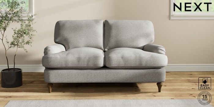 6.12.1 Buy Sadie Deep Relaxed Sit 2 Seater Small Sofa Woven Chenille Easy Clean Light Grey High Slim Turned - Mid from the Laura Ashley online shop Click here to use our website with more accessibility support, for example screen readers