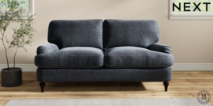 6.12.1 Buy Sadie Deep Relaxed Sit 2 Seater Sofa Boucle Chenille Dark Slate Blue High Slim Turned - Dark from the Laura Ashley online shop Click here to use our website with more accessibility support, for example screen readers