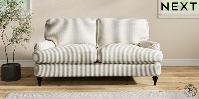 6.12.1 Buy Sadie Deep Relaxed Sit 2 Seater Sofa Chenille Stripe Moss Green High Slim Turned - Dark from the Laura Ashley online shop Click here to use our website with more accessibility support, for example screen readers