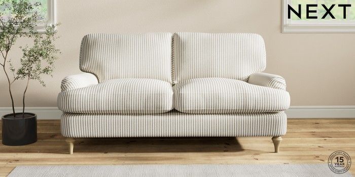 6.12.1 Buy Sadie Deep Relaxed Sit 2 Seater Sofa Chenille Stripe Moss Green High Slim Turned - Light from the Laura Ashley online shop Click here to use our website with more accessibility support, for example screen readers