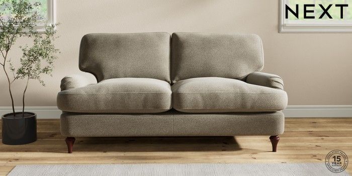 6.12.1 Buy Sadie Deep Relaxed Sit 2 Seater Sofa Chunky Marl Light Olive Green High Slim Turned - Dark Brown from the Laura Ashley online shop Click here to use our website with more accessibility support, for example screen readers