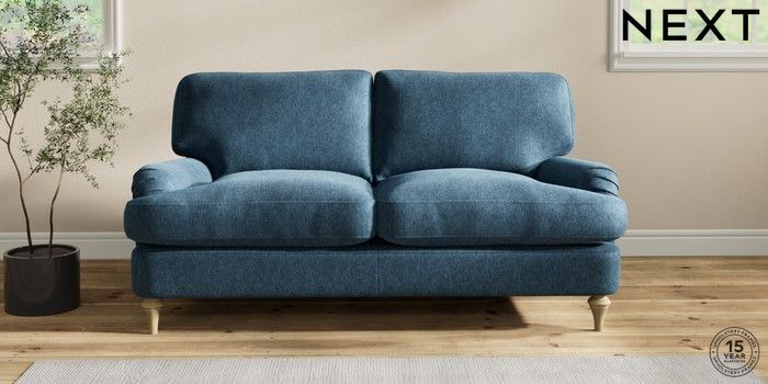 6.12.1 Buy Sadie Deep Relaxed Sit 2 Seater Sofa Cotswold Chenille Dark Blue High Slim Turned - Light from the Laura Ashley online shop Click here to use our website with more accessibility support, for example screen readers