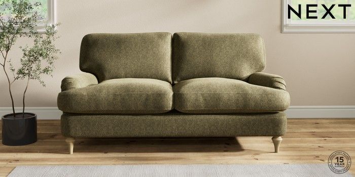 6.12.1 Buy Sadie Deep Relaxed Sit 2 Seater Sofa Cotswold Chenille Dark Green High Slim Turned - Light from the Laura Ashley online shop Click here to use our website with more accessibility support, for example screen readers