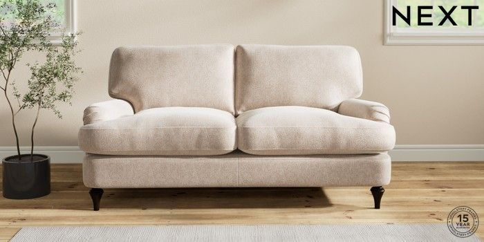 6.12.1 Buy Sadie Deep Relaxed Sit 2 Seater Sofa Cotswold Chenille Light Natural High Slim Turned - Dark from the Laura Ashley online shop Click here to use our website with more accessibility support, for example screen readers