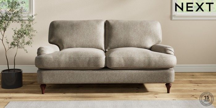 6.12.1 Buy Sadie Deep Relaxed Sit 2 Seater Sofa Cotswold Chenille Mid Mink Brown High Slim Turned - Dark Brown from the Laura Ashley online shop Click here to use our website with more accessibility support, for example screen readers