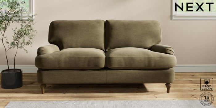 6.12.1 Buy Sadie Deep Relaxed Sit 2 Seater Sofa Fine Chenille Easy Clean Dark Moss Green High Slim Turned - Mid from the Laura Ashley online shop Click here to use our website with more accessibility support, for example screen readers
