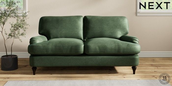 6.12.1 Buy Sadie Deep Relaxed Sit 2 Seater Sofa Luxe Chenille Dark Green High Slim Turned - Dark from the Laura Ashley online shop Click here to use our website with more accessibility support, for example screen readers
