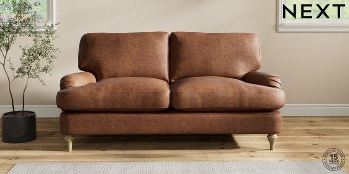 6.12.1 Buy Sadie Deep Relaxed Sit 2 Seater Sofa Monza Faux Leather Easy Clean Chestnut Brown High Slim Turned - Light from the Laura Ashley online shop Click here to use our website with more accessibility support, for example screen readers