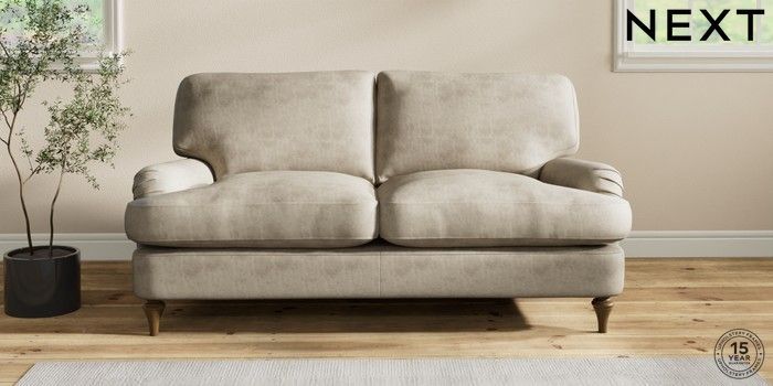 6.12.1 Buy Sadie Deep Relaxed Sit 2 Seater Sofa Monza Faux Leather Easy Clean Mink Brown High Slim Turned - Mid from the Laura Ashley online shop Click here to use our website with more accessibility support, for example screen readers