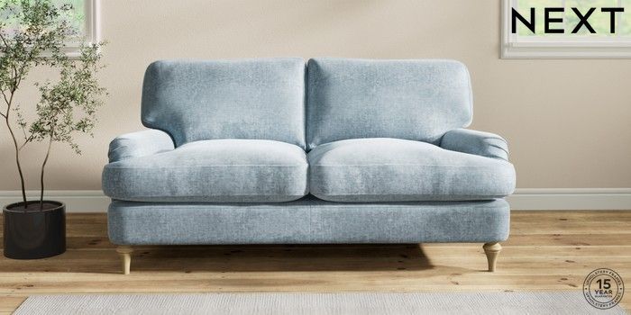 7.2.6 Buy Sadie Deep Relaxed Sit 2 Seater Sofa Plush Chenille Light Blue High Slim Turned - Light from the Laura Ashley online shop Click here to use our website with more accessibility support, for example screen readers