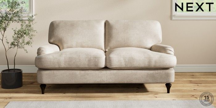 6.12.1 Buy Sadie Deep Relaxed Sit 2 Seater Sofa Plush Chenille Light Natural High Slim Turned - Dark from the Laura Ashley online shop Click here to use our website with more accessibility support, for example screen readers