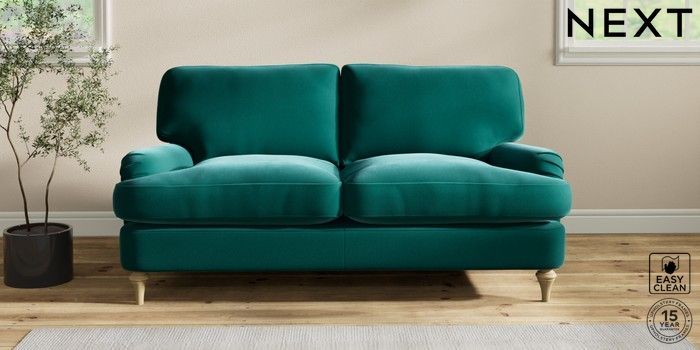 6.12.1 Buy Sadie Deep Relaxed Sit 2 Seater Sofa Plush Velvet Easy Clean Juniper Green High Slim Turned - Light from the Laura Ashley online shop Click here to use our website with more accessibility support, for example screen readers