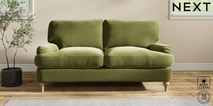 6.12.1 Buy Sadie Deep Relaxed Sit 2 Seater Sofa Plush Velvet Easy Clean Mid Olive Green High Slim Turned - Light from the Laura Ashley online shop Click here to use our website with more accessibility support, for example screen readers