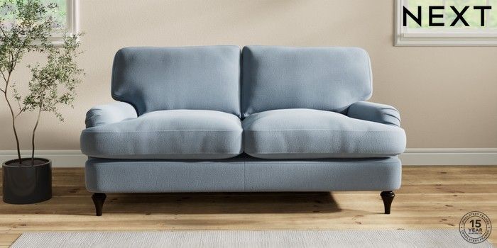6.12.1 Buy Sadie Deep Relaxed Sit 2 Seater Sofa Relaxed Linen Look Mid Blue High Slim Turned - Dark from the Laura Ashley online shop Click here to use our website with more accessibility support, for example screen readers