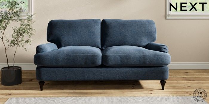 6.12.1 Buy Sadie Deep Relaxed Sit 2 Seater Sofa Ripple Chenille Dark Blue High Slim Turned - Dark from the Laura Ashley online shop Click here to use our website with more accessibility support, for example screen readers