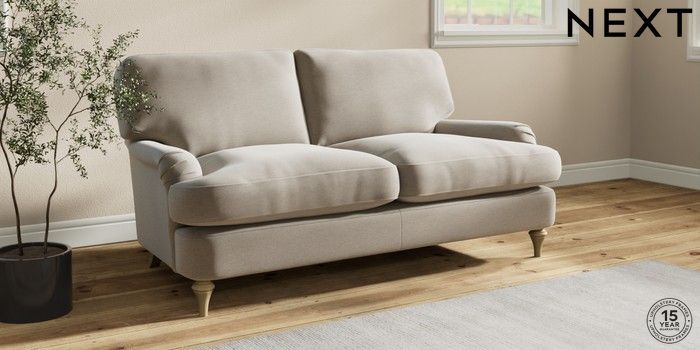 7.0.3 Buy Sadie Deep Relaxed Sit 2 Seater Sofa Ripple Chenille Light Natural High Slim Turned - Light from the Laura Ashley online shop Click here to use our website with more accessibility support, for example screen readers