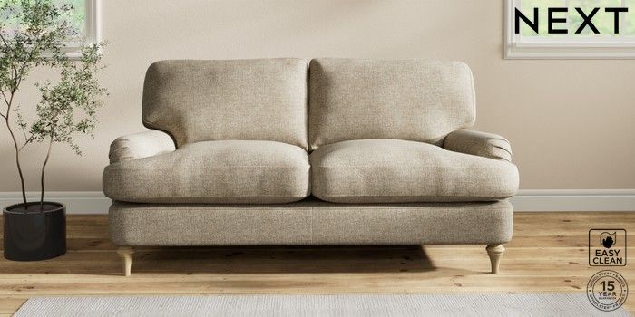 6.12.1 Buy Sadie Deep Relaxed Sit 2 Seater Sofa Woven Chenille Easy Clean Mid Natural High Slim Turned - Light from the Laura Ashley online shop Click here to use our website with more accessibility support, for example screen readers