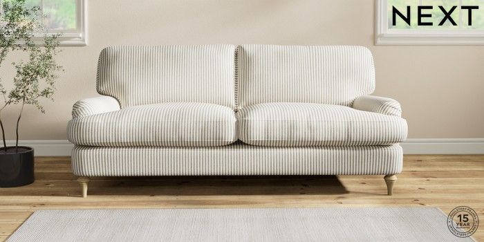 6.12.1 Buy Sadie Deep Relaxed Sit 3 Seater Sofa Chenille Stripe Moss Green High Slim Turned - Light from the Laura Ashley online shop Click here to use our website with more accessibility support, for example screen readers