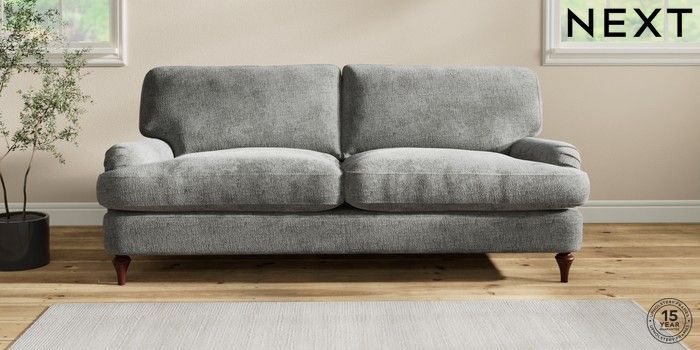 6.12.1 Buy Sadie Deep Relaxed Sit 3 Seater Sofa Chunky Chenille Dark Grey High Slim Turned - Dark Brown from the Laura Ashley online shop Click here to use our website with more accessibility support, for example screen readers