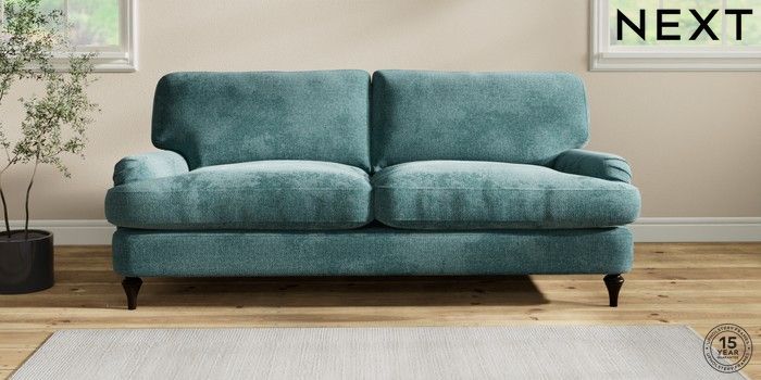 6.12.1 Buy Sadie Deep Relaxed Sit 3 Seater Sofa Chunky Chenille Mid Teal Green High Slim Turned - Dark from the Laura Ashley online shop Click here to use our website with more accessibility support, for example screen readers