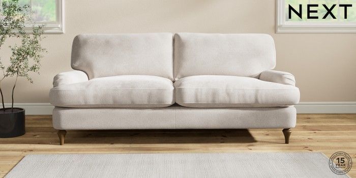 6.12.1 Buy Sadie Deep Relaxed Sit 3 Seater Sofa Chunky Chenille Oyster High Slim Turned - Mid from the Laura Ashley online shop Click here to use our website with more accessibility support, for example screen readers
