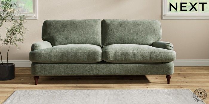 6.12.1 Buy Sadie Deep Relaxed Sit 3 Seater Sofa Chunky Texture Mid Forest Green High Slim Turned - Dark Brown from the Laura Ashley online shop Click here to use our website with more accessibility support, for example screen readers