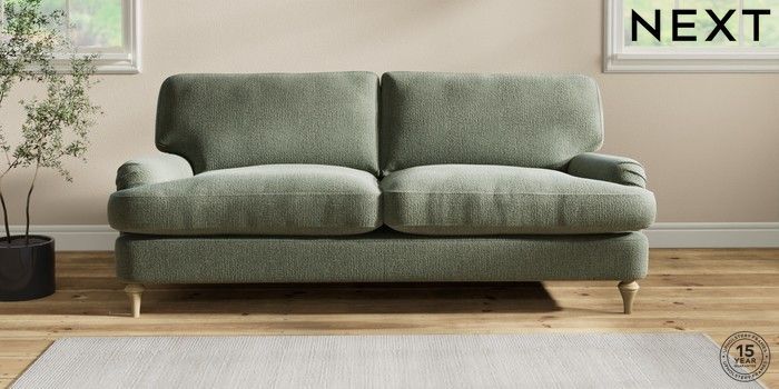 6.12.1 Buy Sadie Deep Relaxed Sit 3 Seater Sofa Chunky Texture Mid Forest Green High Slim Turned - Light from the Laura Ashley online shop Click here to use our website with more accessibility support, for example screen readers