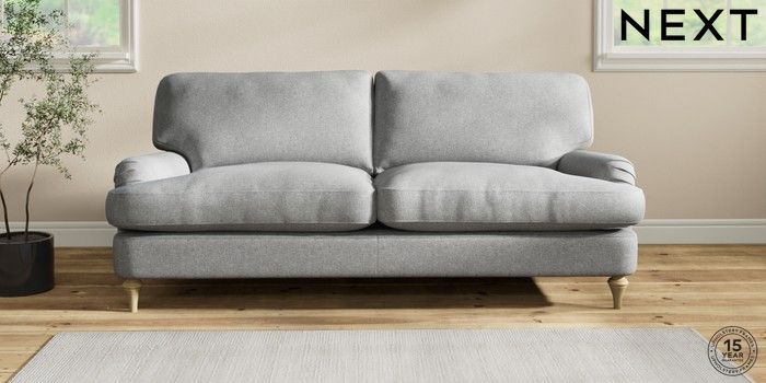 6.12.1 Buy Sadie Deep Relaxed Sit 3 Seater Sofa Chunky Weave Mid Grey High Slim Turned - Light from the Laura Ashley online shop Click here to use our website with more accessibility support, for example screen readers