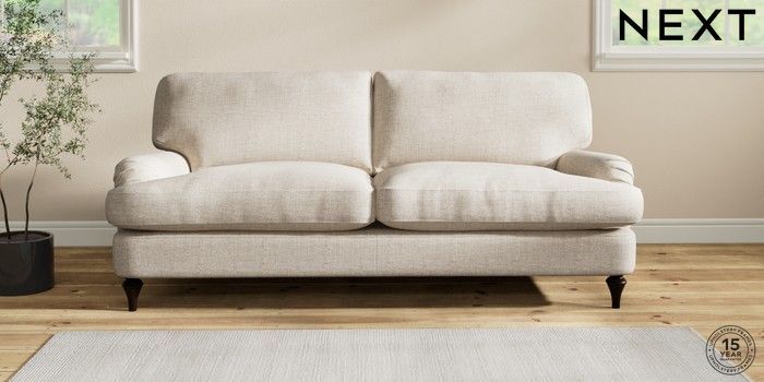 6.12.1 Buy Sadie Deep Relaxed Sit 3 Seater Sofa Chunky Weave Mid Natural High Slim Turned - Dark from the Laura Ashley online shop Click here to use our website with more accessibility support, for example screen readers