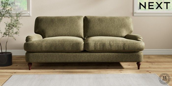 6.12.1 Buy Sadie Deep Relaxed Sit 3 Seater Sofa Cotswold Chenille Dark Green High Slim Turned - Dark Brown from the Laura Ashley online shop Click here to use our website with more accessibility support, for example screen readers