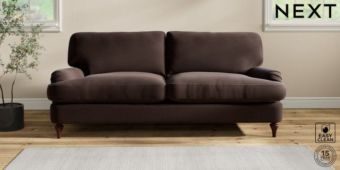 6.12.1 Buy Sadie Deep Relaxed Sit 3 Seater Sofa Fine Chenille Easy Clean Chocolate Brown High Slim Turned - Dark Brown from the Laura Ashley online shop Click here to use our website with more accessibility support, for example screen readers