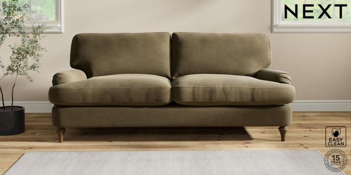 6.12.1 Buy Sadie Deep Relaxed Sit 3 Seater Sofa Fine Chenille Easy Clean Dark Moss Green High Slim Turned - Mid from the Laura Ashley online shop Click here to use our website with more accessibility support, for example screen readers