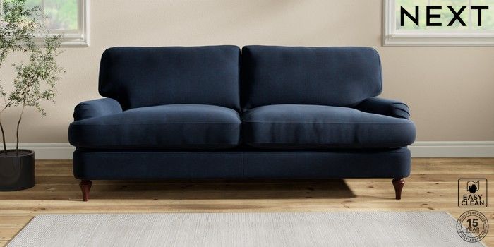 6.12.1 Buy Sadie Deep Relaxed Sit 3 Seater Sofa Fine Chenille Easy Clean Dark Navy Blue High Slim Turned - Dark Brown from the Laura Ashley online shop Click here to use our website with more accessibility support, for example screen readers